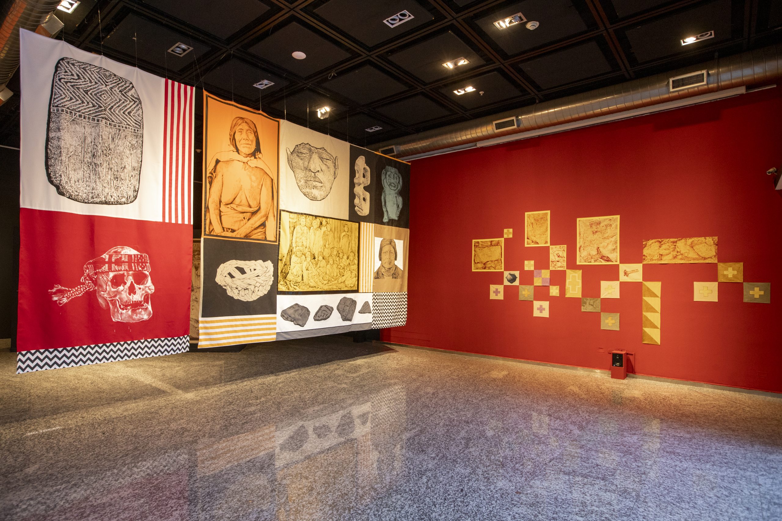 Una exposición que invita a volver al pasado y a reflexionar sobre el legado de la prehistoria en la cultura actual, es la que está presentando en la Sala de Arte CCU el artista visual, Sebastián Riffo. “Geometrías y Vestigios” reúne una serie de obras bajo técnicas como la pintura acrílica sobre telas industriales de colores, unión de grandes mantos -a través del patchwork-, témperas en gran formato, vídeos de registro de lugares y telas teñidas con tintes naturales sacados de la cúrcuma y la cebolla, entre otros elementos.